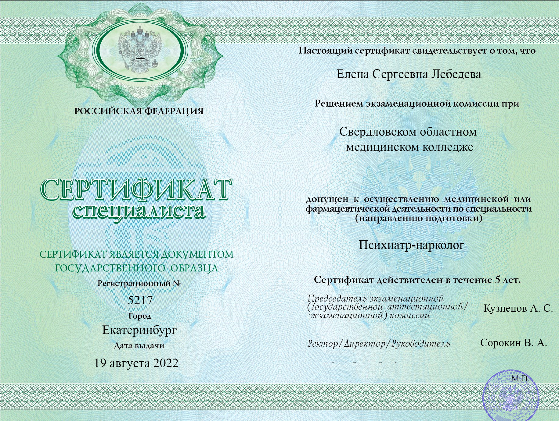 Елена Сергеевна Лебедева врач нарколог клиники доктора Стукаловой в Ржеве